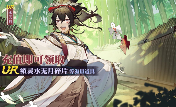 活动描述:活动期间,御侍大人累计充值一定数额即可在活动界面领取UR飨灵水无月碎片以及大量游戏内豪华道具。