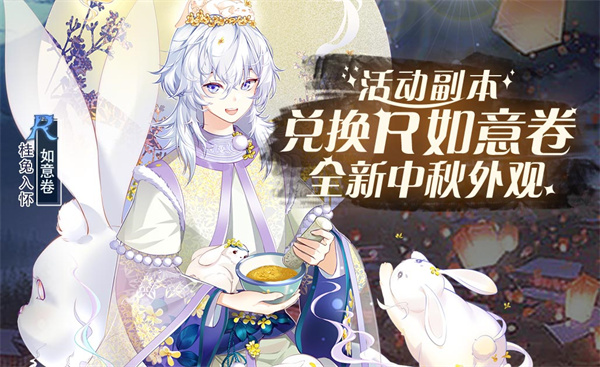 活动期间,开启中秋活动副本,御侍大人可收集道具,兑换R飨灵如意卷全新外观-桂兔入怀。快来与如意卷携手查明真相,过一个平安团圆的中秋佳节吧!