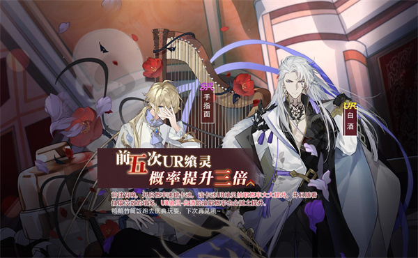 活动描述:活动期间,开启概率递增卡池,UR飨灵-白酒和SR飨灵-手指面限时加入卡池,御侍大人使用专属道具进行召唤,该卡池UR飨灵抽取概率大幅度提升,并且随着抽取次数的增多,UR飨灵-白酒的抽取概率也会随之提升。PS:鸭鹅竹筒饭跑去庆典玩耍,下次再见哦~