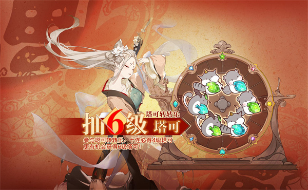活动描述:活动期间,御侍大人可使用喵爪塔可夹,前往塔可转转乐,十连必得4级塔可,还有机会直接获得6级塔可!喵爪塔可夹在道具商城可使用幻晶石兑换,也可在礼包商城进行购买。