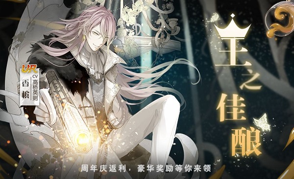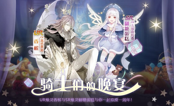 活动描述:还记得这一年来守护着你的骑士们吗,他们或与你一路相伴,或许只是旅途中偶遇,你是否也曾向谁伸出邀请的双手,却只是换来擦肩而过?曾经的遗憾就用现在来弥补吧,周年庆期间,开启全新限时卡池,整体UR概率提升百分之三十,同时御侍大人将可选择UR飨灵香槟或者屠苏酒的专属卡池,御侍大人请相信,你所期望的那个人,这一次一定会来到你的身边~