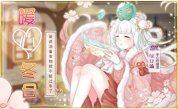 周年庆期间,御侍大人参加活动即可获得SR飨灵绿豆汤的皮肤——【手心的暖意】哦。